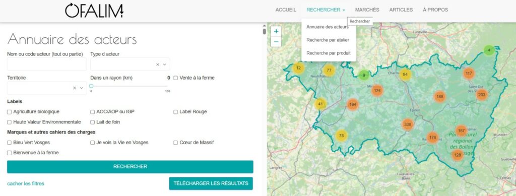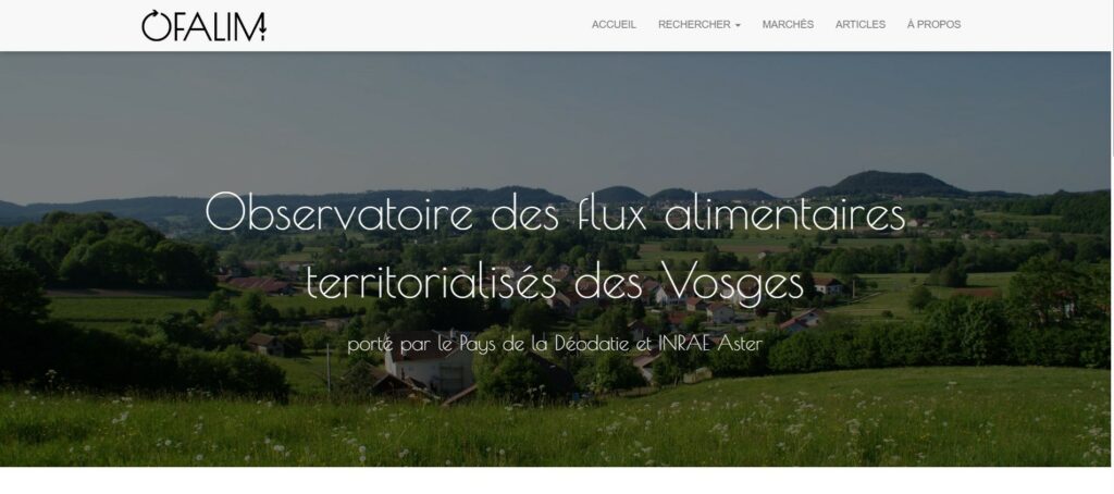 L'UR ASTER-Mirecourt et le PETR du Pays de la Déodatie mènent conjointement le projet OFAlim «Observatoire des Flux Alimentaires territorialisés». L'objectif est de créer un observatoire numérique des flux alimentaires territorialisés (OFALIM) permettant de recenser les acteurs du territoire et destiné à faciliter leur mise en relation.