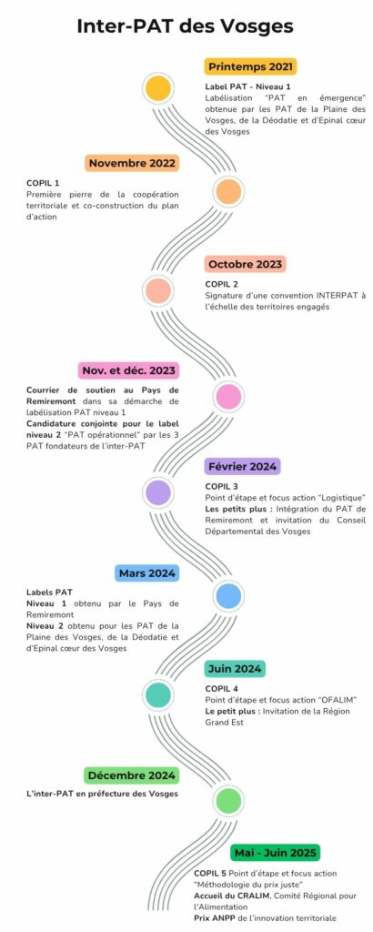 Dès le début, les trois PAT ont travaillé en réseau sur la base de la coordination mise en place par les services de l'Etat, via la DDT88. De ces échanges réguliers est née la notion d' « INTERPAT » mettant en lumière les particularités de chaque territoire tout en respectant leurs similitudes et complémentarités.